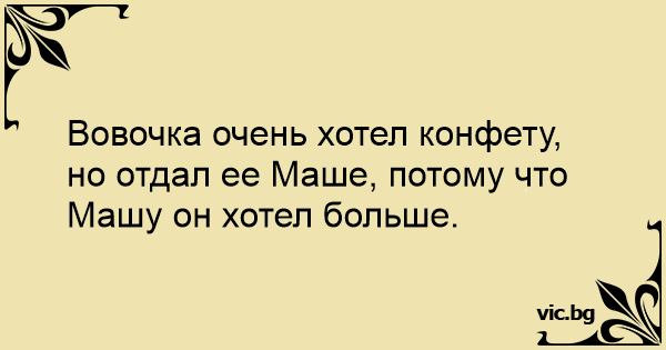 Вовочка очень хотел конфету, но отдал ее Маше, потому что Машу он хотел больше.