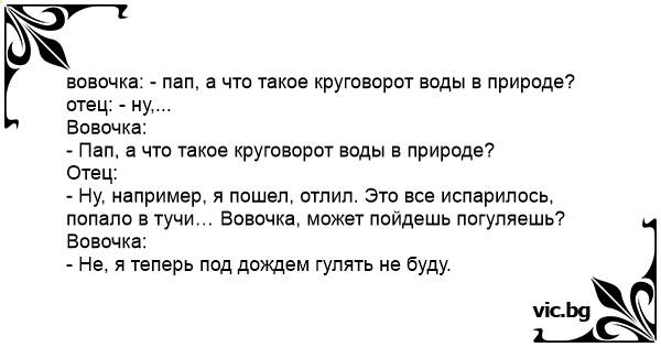 вовочка: - пап, а что такое круговорот воды в природе? отец: - ну,...