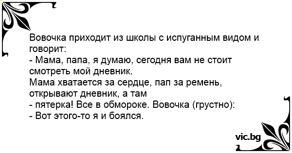 - пятерка! Все в обмороке. Вовочка (грустно):