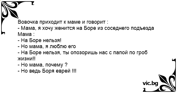 - Мама, я хочу женится на Боре из соседнего подъезда