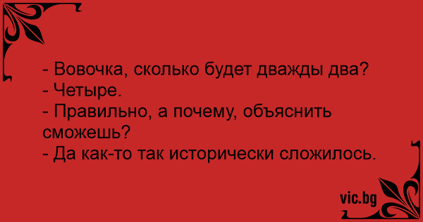 - Вовочка, сколько будет дважды два?