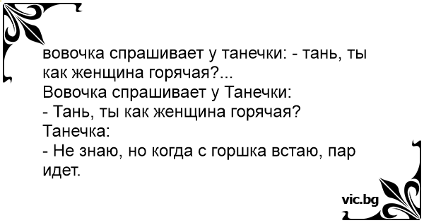 вовочка спрашивает у танечки: - тань, ты как женщина горячая?...