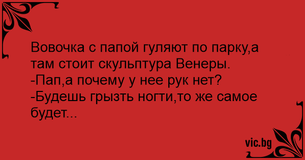 Вовочка с папой гуляют по парку,а там стоит скульптура Венеры.