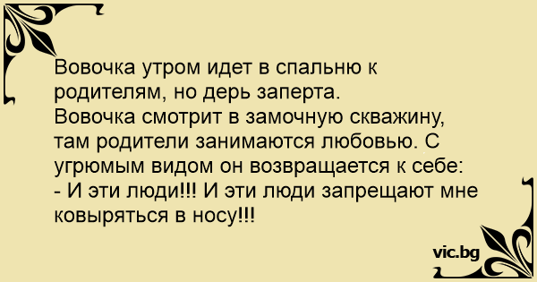 Една сутрин Иванчо отишъл към спалнята на родителите си, но вратата се оказала заключена.