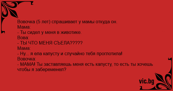 - МАМА! Ты заставляешь меня есть капусту, то есть ты хочешь чтобы я забеременел?