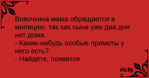 Вовочкина мама обращается в милицию, так как сына уже два дня нет дома.