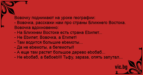 - Вовочка, расскажи нам про страны Ближнего Востока.