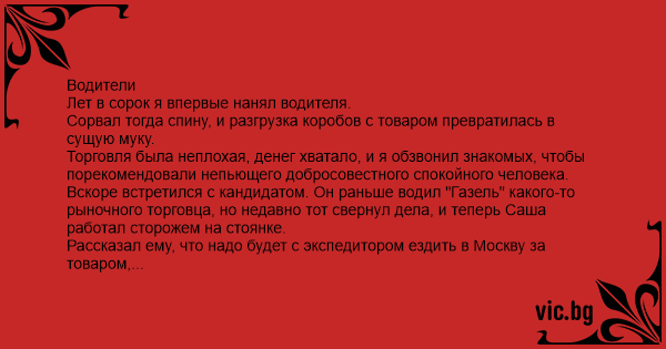 Ответил, что он водил «Газель» какого-то предпринимателя, работал много и добросовестно, но козёл-начальник не оценил его старания, и платил явно недостаточно.