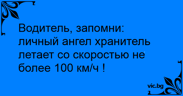 Водитель, запомни: личный ангел хранитель летает со скоростью не более 100 км/ч !