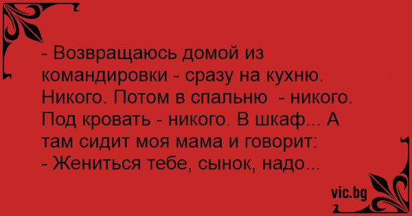 Под кровать - никого. В шкаф... А там сидит моя мама и говорит: