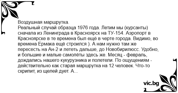 Реальный случай образца 1976 года. Летим мы (курсанты) сначала из Ленинграда в Красноярск на ТУ-154. Аэропорт в Красноярске в те времена был ещё в черте города. Видимо, во времена Ермака ещё строился ). А нам нужно там же пересесть на Ан-2 и лететь дальше, до Новобирилюсс. Удобно, и большие и малые самолёты здесь же. Месяц - февраль, дождались нашего кукурузника и полетели. По ощущениям - действительно как старая маршрутка на 12 человек. Что-то скрипит, из щелей дует. А мы в форме, т. е. в шинелях и ботиночках на рыбьем меху. Хорошо, какая-то попона на полу валялась. Хоть ноги прикрыли. Лететь 40 мин. Прохладненько, минуты считаем. Вроде садиться пора, а мы всё летим. Уже мысли безумные лезут, может ветер сильный. Тут из кабины выходит пилот с вопросом - "местные есть?". Мой товарищ отвечает - я местный. Ему пилот - заходи в кабину, кажись мы промахнулись. Как товарищ потом рассказал. Ему говорят, смотри, где мы. Ничего не поймём. Сашка посмотрел, быстро сориентировался. Говорит, вертайте назад и берите правее. Пролетаем, мол вот над той деревней. За ней дорога. Летим над дорогой около 30 км. И аккурат перед следующей деревней забираете направо и увидите лётное поле. Прилетели, не таджики всё же рулили )