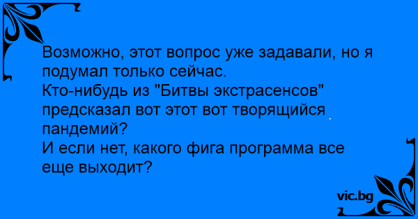 Кто-нибудь из "Битвы экстрасенсов" предсказал вот этот вот творящийся пандемий?