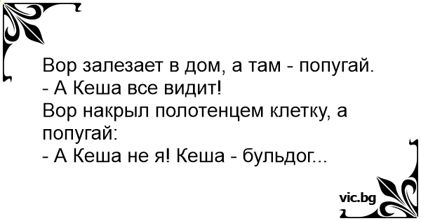 Крадец влязал в къща да краде. Там имало папагал крадецът почнал да рови и папагалат казал: