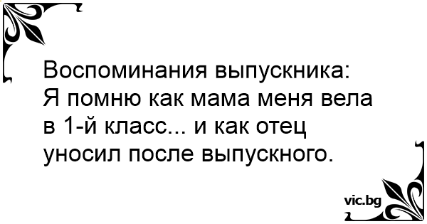 Я помню как мама меня вела в 1-й класс... и как отец уносил после выпускного.