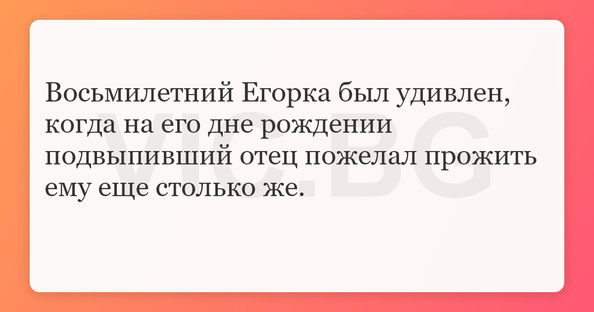 Восьмилетний Егорка был удивлен, когда на его дне рождении подвыпивший отец пожелал прожить ему еще столько же.