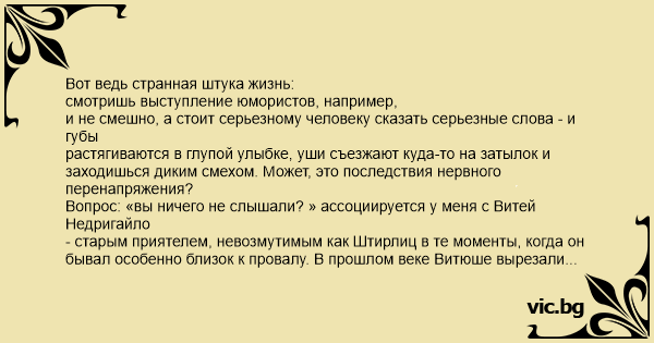 Вопрос: «вы ничего не слышали? » ассоциируется у меня с Витей Недригайло