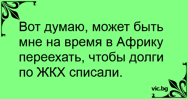 Вот думаю, может быть мне на время в Африку переехать, чтобы долги по ЖКХ списали.