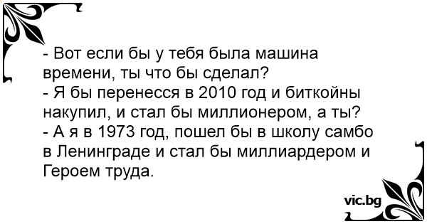- Вот если бы у тебя была машина времени, ты что бы сделал?