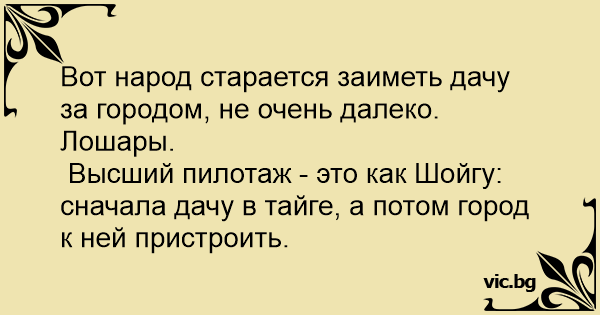 Высший пилотаж - это как Шойгу: сначала дачу в тайге, а потом город к ней пристроить.