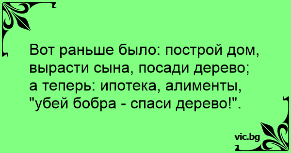 а теперь: ипотека, алименты, "убей бобра - спаси дерево!".