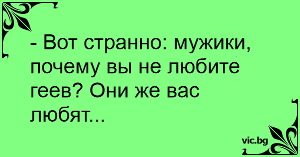 - Вот странно: мужики, почему вы не любите геев? Они же вас любят...