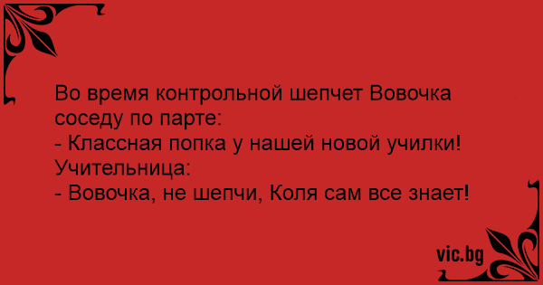 Во время контрольной шепчет Вовочка соседу по парте: