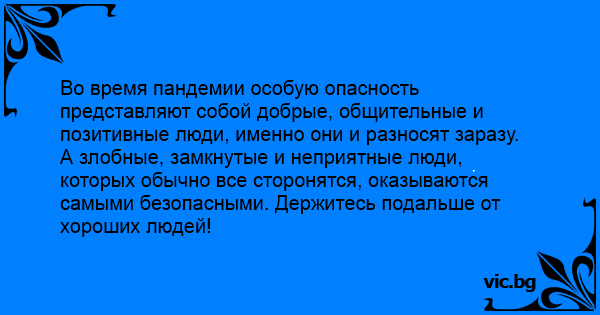 Во время пандемии особую опасность представляют собой добрые, общительные и позитивные люди, именно они и разносят заразу.