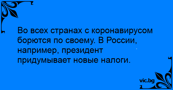 Во всех странах с коронавирусом борются по своему. В России, например, президент придумывает новые налоги.