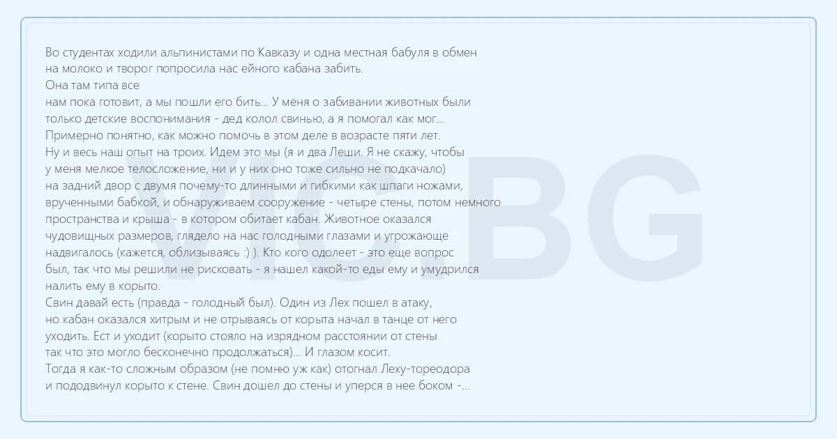 Уже потом мы вспомнили, что бабка нас просила аккуратно привязать кабана