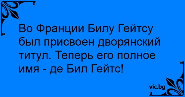 Во Франции Билу Гейтсу был присвоен дворянский титул. Теперь его полное имя - де Бил Гейтс!