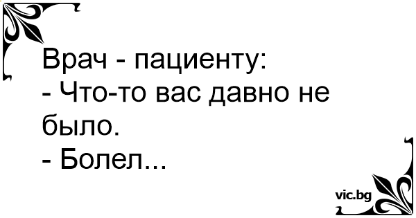 Doktoren til pasienten. - Hvorfor kom du ikke til timen? Pasienten. - Beklager doktor, men jeg har vært syk!