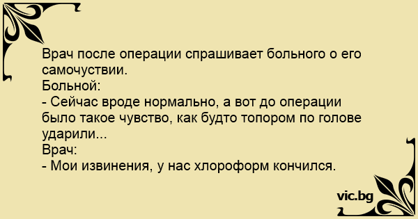 - Мои извинения, у нас хлороформ кончился.