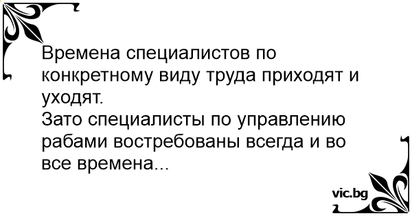 Зато специалисты по управлению рабами востребованы всегда и во все времена...