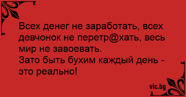Всех денег не заработать, всех девчонок не перетр@хать, весь мир не завоевать.