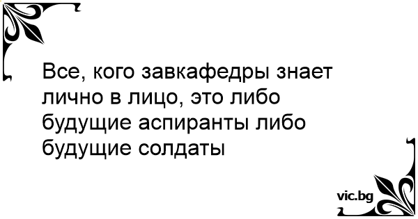Все, кого завкафедры знает лично в лицо, это либо будущие аспиранты либо будущие солдаты