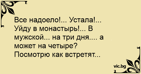 Уйду в монастырь!... В мужской... на три дня.... а может на четыре?