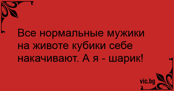 Все нормальные мужики на животе кубики себе накачивают. А я - шарик!