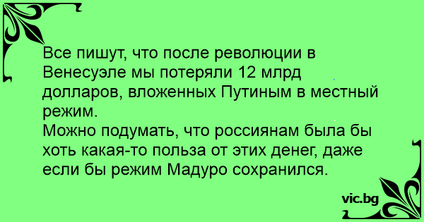 Все пишут, что после революции в Венесуэле мы потеряли 12 млрд долларов, вложенных Путиным в местный режим.