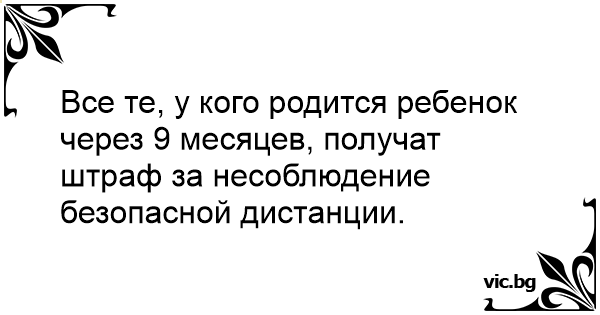 Все те, у кого родится ребенок через 9 месяцев, получат штраф за несоблюдение безопасной дистанции.