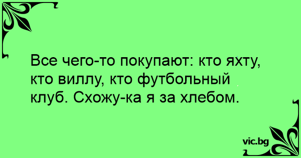 Все чего-то покупают: кто яхту, кто виллу, кто футбольный клуб. Схожу-ка я за хлебом.<br />