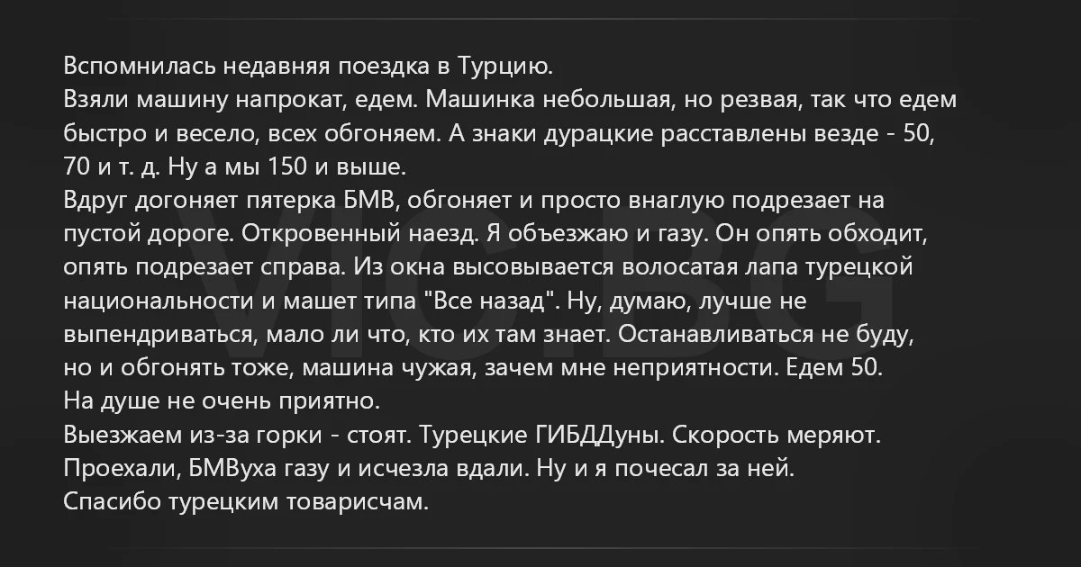 опять подрезает справа. Из окна высовывается волосатая лапа турецкой