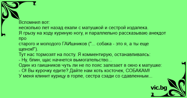 старого и молодого ГАИшников ("... собака - это я, а ты еще щенок!").