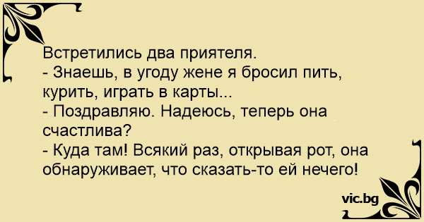 - Знаешь, в угоду жене я бросил пить, курить, играть в карты...