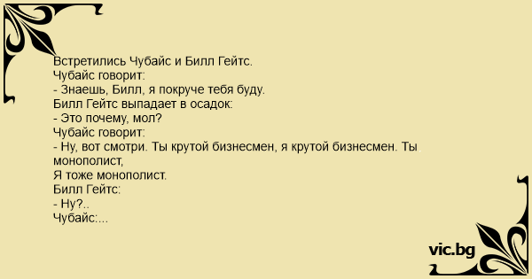 - Ну, вот смотри. Ты крутой бизнесмен, я крутой бизнесмен. Ты монополист,