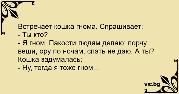 Встречает кошка гнома. Спрашивает: