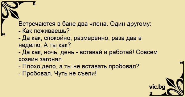 Встречаются в бане два члeнa. Один другому: