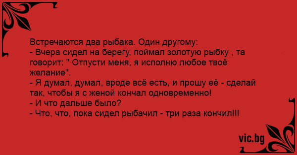 - Что, что, пока сидел рыбачил - три раза кончил!!!