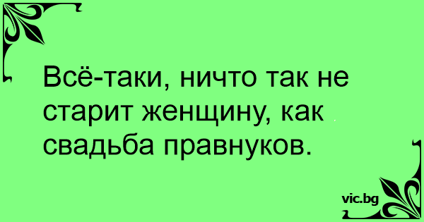 Всё-таки, ничто так не старит женщину, как свадьба правнуков.