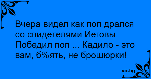 Вчера видел как поп дрался со свидетелями Иеговы.