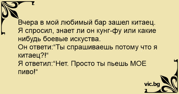 Вчера в баре ко мне за столик подсел китаец, и я спросил его: